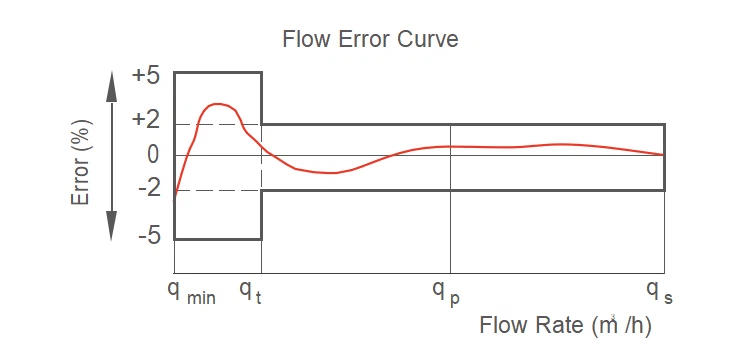 In the upper zone from Qt inclusive up to and including Qs is: cold water meter ±2%
